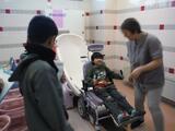 総合的な学習の時間に取り組んでいる高齢者福祉について学ぶために、12月5日(金)に紋別市デイサービスセンターへ行きました。 体が動きにくくなった方でも入れる移動式のお風呂や、車いすのままで乗れる車の仕組みなどを見せていただきました。 体験もさせていただき、子どもたちはどの人にとっても普段の暮らしがよりよくなるよう工夫されていることに気づくことができました。